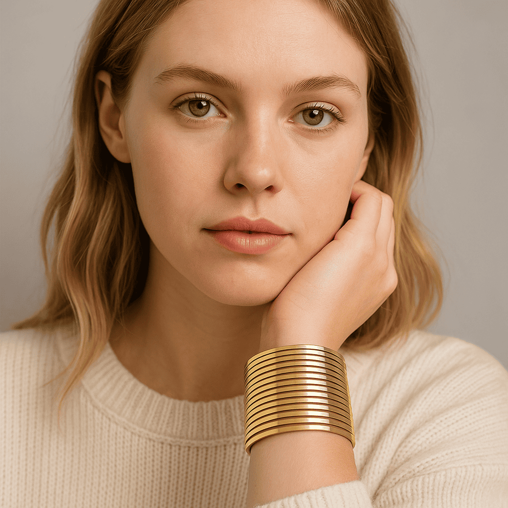 💥 Affirmé, élégant et résolument graphique : ce bracelet manchette doré deviendra ta pièce forte du quotidien.