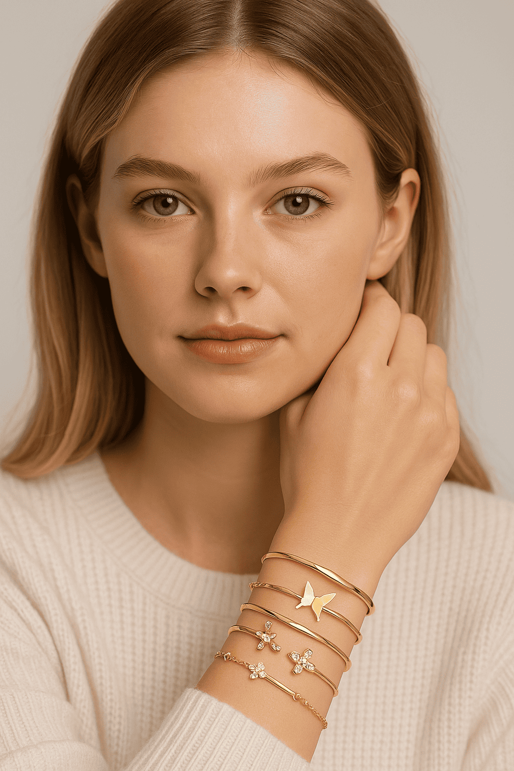 Sublimez votre poignet avec notre coffret de bracelets dorés, une collection de bijoux féminins délicats conçus pour rehausser votre élégance au quotidien.